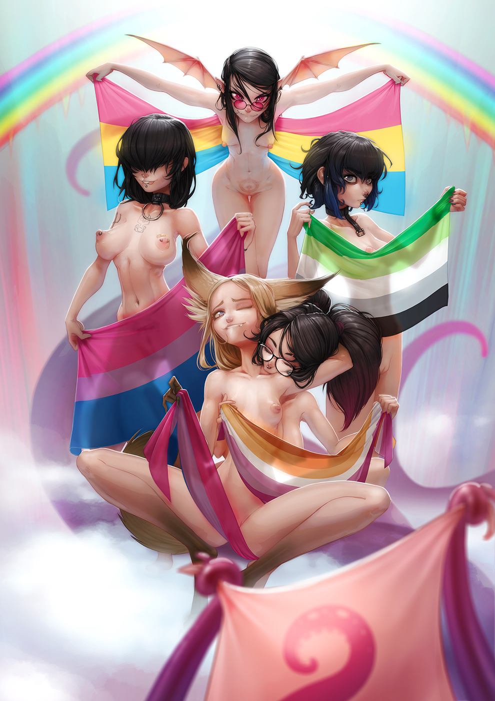 Here are some of my proud OC girls for pride month! Everyone with the correct flag.^^ 🏳️🌈🏳️🌈🏳️🌈🏳️🌈 Can you identify all of them? Wait... the flag in the front is new to me... Is this an official one? There will be some more "action" scenes on my p4tr30n this Sunday. https://t.co/meJFSgpRZf