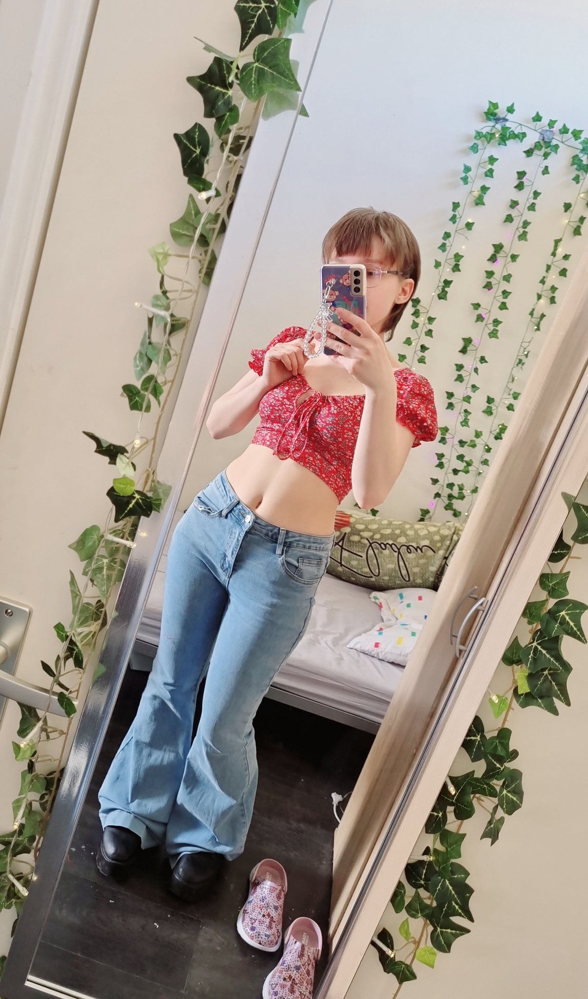 Got these cute pants today, they're an S (Europe34) but the pants legs are still way too long even after putting on platforms & safety pins 🫠 https://t.co/njAO93q6gZ