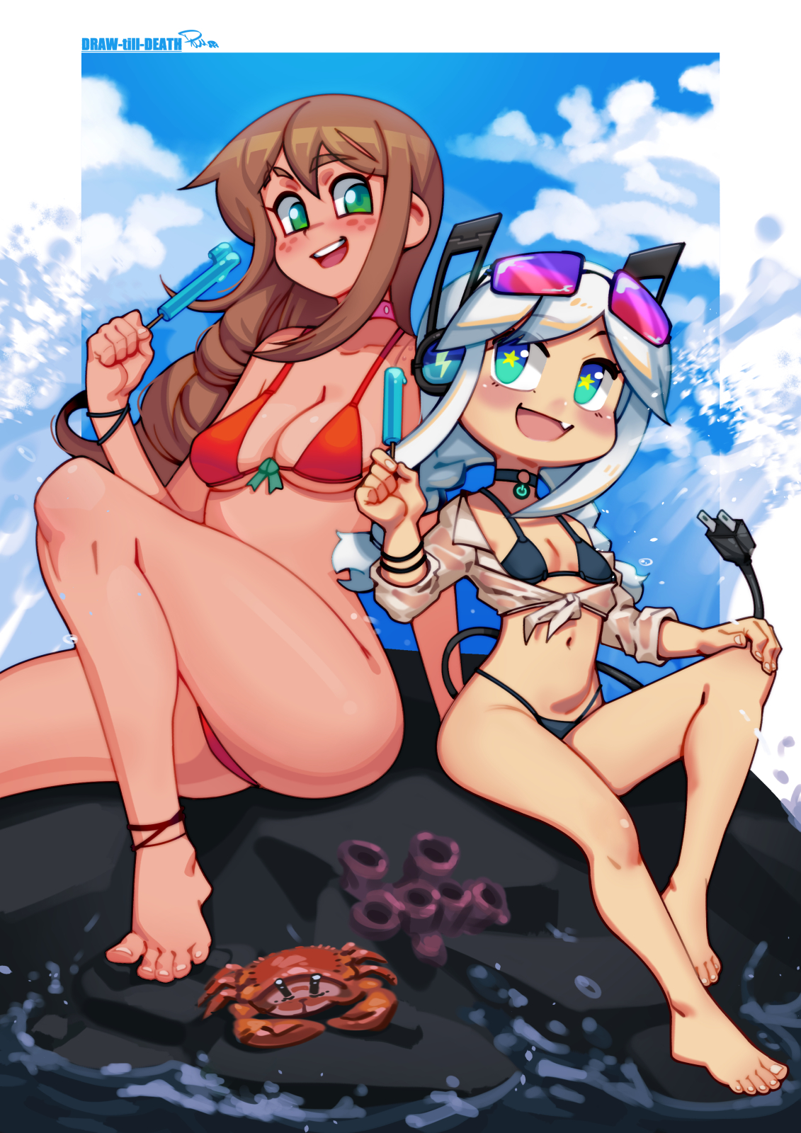 A summer fanart of @Porforever OC Digitan and my OC Ashley. Digitan is nice enough to let Ashley have the bigger popsicle even. https://t.co/R5bj1qu7Iy